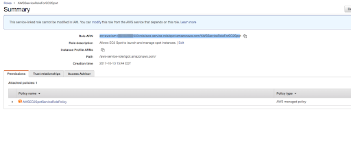 4. Look for AWSServiceRoleForEC2Spot role and copy its ARN: